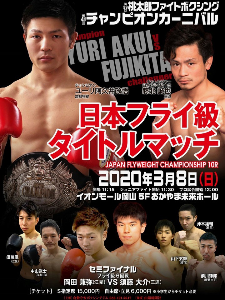 10月の王座決定戦で約38年ぶりに岡山のジムからチャンピオンに就いた阿久井の初防衛戦。抜群の当て感と勝負どころを逃さない詰めの鋭さで勝ち星のほとんどが初回KO勝ちの阿久井。今回もチャンスとみれば一気に仕留めにかかるだろう。一方、7年目で初の日本王座挑戦の藤北は、突出した武器はないものの正統派スタイルでここまで勝ち上がってきた。日本王者が多く誕生している三迫ジムに所属しており、『自分もチャンピオンの仲間入りをする』という思いは強い。序盤の攻防から目が離せないのは言うまでもないだろう。
