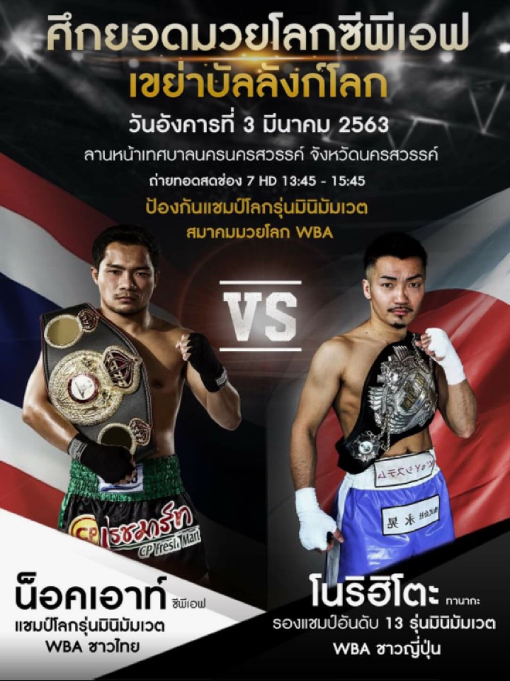 注目:前日本王者の田中が完全アウェーのタイで世界初挑戦する。チャンピオンのノックアウトは20戦全勝(7KO)のオーソドックススタイルでこれまで11度の防衛に成功している安定王者だ。堅実な試合運びを得意としておりディフェンス力に長けていてペースを崩しにくい。さらに3月のタイは日中は30度超えで屋外のリングで戦う田中にとって過酷な条件での挑戦となる。一撃のパンチ力で上回る田中としては、前半に仕掛けておきたい。日本人選手のタイでの世界戦の戦績は24敗1分(公式試合)とまさに鬼門。田中が勝てば歴史的勝利となる。