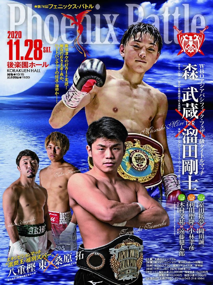 デビューから11戦全勝の若き王者森が3度目の防衛戦。森はコロナ禍で試合が決まらない中でも、モチベーションを下げることなく故郷の熊本県で徹底的に走り込んで下半身強化に努めていた。世界ランキングもWBO4位に上昇し世界をアピールするためにも強さを見せたいところだ。挑戦者の溜田は昨年11月のフェザー級トーナメント予選で敗れて以来の再起戦となる。試合によって仕上がりにムラがあるが、ツボにハマった時の爆発力は魅力的だ。ベルトと世界ランクが手に入るチャンスとあってモチベーションも高い。打ち合いに勝機を見出す溜田に対し、森がどの距離で戦うのか?