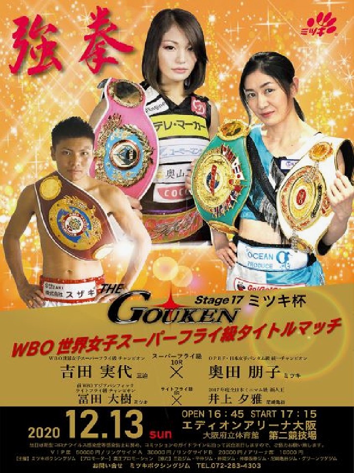 スーパーフライ級王者の吉田のV2戦。今年8月に三迫ジムに移籍した吉田は、男子のトップ選手が多い環境でさらなる進化を遂げている。今回はアウェー戦になるが、パワーに変えるタイプなので問題はないだろう。挑戦者の奥田は、今年1月に日本とOPBF王座を獲得。千載一遇のチャンスに闘志を燃やす。初めてのスーパーフライ級での試合が吉と出るか?長身の奥田が懐の深さを活かしてジャブから右ストレートで突き放し、吉田が接近戦を仕掛ける展開が予想される。加藤健太トレーナーとコンビを組んだ吉田の成長と奥田の攻略法に注目だ。