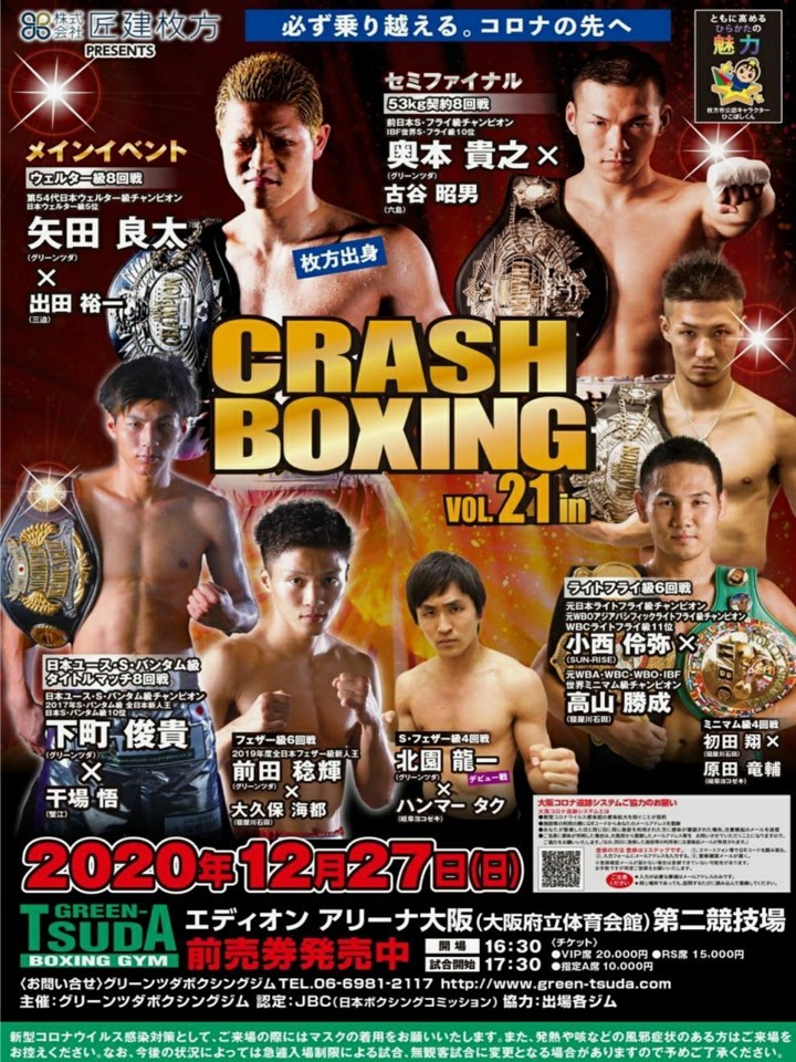 元日本ウェルター級王者の矢田の再起2戦目。今年8月の試合では、ジャブからの丁寧な組み立てを見せると、最後は強打を爆発させて"浪速のターミネーター"の進化バージョンを披露した。拳を交える出田は、ここ数年勝ち星から遠ざかっているが、ランカー相手に接戦を落としてのもの。打撃戦に持ち込み先にパンチを当てていきたい。