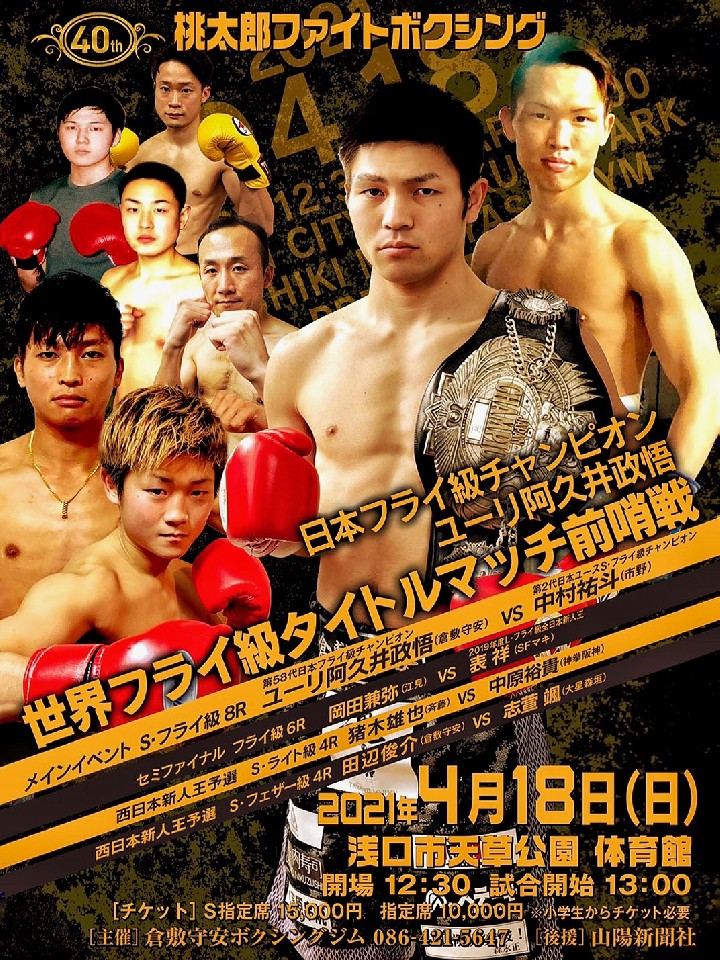 見どころ:フライ級で圧倒的な強さを見せている阿久井が、ノンタイトル戦に臨む。速攻型パンチャーの阿久井だが、昨年10月に行われた初防衛戦では、強打に加えて試合運びの上手さと豊富なスタミナを証明した。キャリア19戦目で初のスーパーフライ級でのリングに上がる。元日本ユース・スーパーフライ級王者の中村は、左右ともに破壊力のあるパンチが持ち味。昨年12月に赤穂亮(横浜光)にKO負けを喫して以来の再起戦で大きなチャンスを掴んだ。危険なパンチが交錯するスリリングな展開となるだろう。