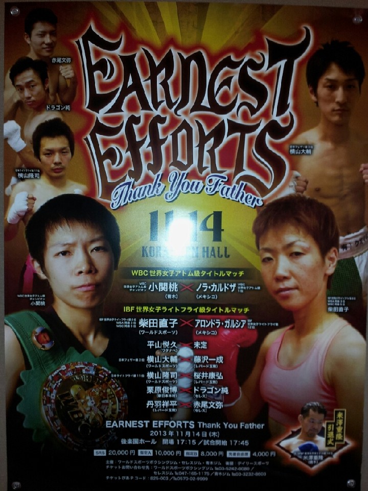 注目:世界にはこれまで2度挑戦し、いずれも僅差判定で涙を飲んだ柴田は、3度目の挑戦を背水の陣で臨む。13戦10勝(3KO)3敗の柴田に対するは、IBF同級12位のアロンドラ・ガルシア(メキシコ)。右構えのガルシアはまだプロ1年目の18歳だが、戦績は11戦11勝(1KO)。直近の8回戦で判定勝ちし、世界初挑戦の機会を得た。