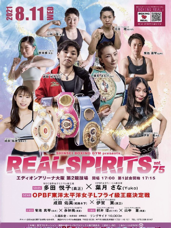 日本王者の成田が階級を上げてOPBF東洋太平洋王座を狙う。成田は、昨年12月にモンブランみき(ワタナベ)に判定勝ちし初防衛に成功した。長いリーチを活かしジャブからワンツー、右アッパーにつなげる正統派スタイルだ。タイトル初挑戦の伊賀は、ややスロースターターな傾向があるが、好戦的なファイトスタイルで現在4連勝中。先制攻撃でペースを握りたいところだ。