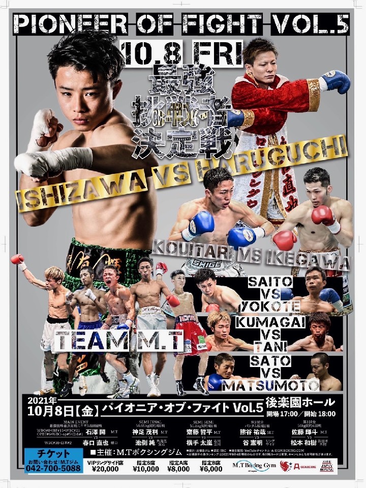 石澤は、今年4月に高田勇仁(ライオンズ)に判定勝ちし日本ユース王座初防衛に成功。その後、同王座を返上した。回転力を活かした連打と高い攻撃力が魅力で8勝のうち7KOしている。鹿児島から参戦する春口は、昨年11月に刈谷でノーランカーの冨田真(HEIWA)に判定勝ち。キレのある右カウンターと冷静な試合運びに長けている。積極的に仕掛けてくるであろう石澤に対し、迎え撃つようだと後手に回る。勢いを止めるためにどのような対策をしてくるのか!?