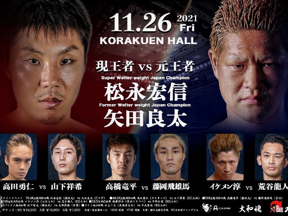 日本王者の松永と元日本王者の矢田による注目の一戦。松永は今年8月にメキシコに遠征し初回TKO勝ち。矢田とは2017年5月に対戦予定だったが中止となり、4年半越しに実現となった。パワーファイターの矢田にどのような対応を見せるのか?矢田は、昨年12月に出田裕一(三迫)に敗れて以来の再起戦。大阪から乗り込むがこれまで後楽園ホールでは3戦全勝と相性が良い。パワフルな攻撃で松永に襲いかかる。