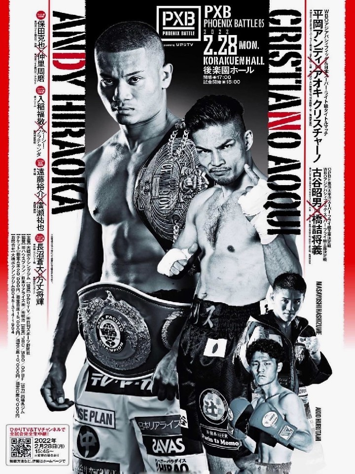 スーパーライト級2冠王者の平岡の初防衛戦。昨年10月に佐々木尽(八王子中屋)との王座決定戦で11回TKO勝ちで戴冠。長く続いた無冠の帝王からチャンピオンに昇格した。懐の深さを活かした強打が魅力で、ポジション取りに長けていている穴が少ないサウスポーだ。挑戦者のアオキは約5年7ヶ月ぶり、2度目の日本王座に挑む。ジャブから右ストレート、右フックは決定力があり、昨年5月の近藤明広(一力)戦では一皮むけた印象を与えた。勝てばベルトと世界ランキングが手に入る一戦でモチベーションはMAXだ!