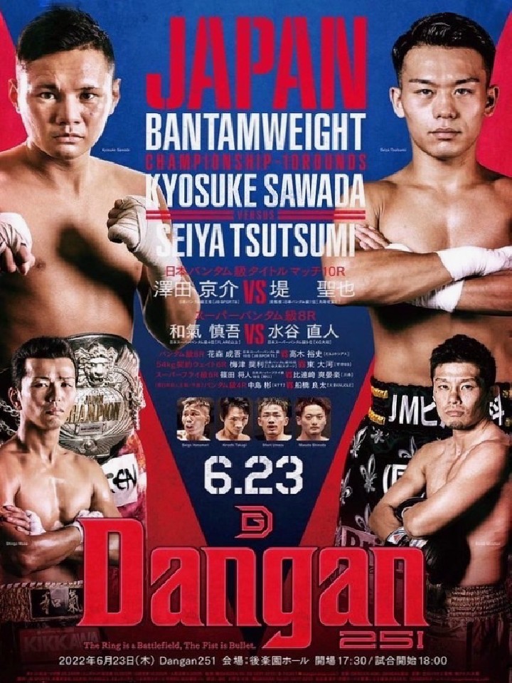 今年2月に日本王者に輝いた澤田のV1戦。軽快なフットワークを活かしながらテンポの良い攻撃を得意とする澤田だが、ここ数戦は序盤にダウンを奪うなど決定力が増した印象だ。鬼門とされる初防衛戦で進化した姿を見せたい。タイトル初挑戦の堤は、2020年10月に元世界王者の比嘉大吾(志成)と引き分けて以来のリング。フィジカルの強さとアマ仕込みのテクニックを持つスイッチヒッターだ。かつては中嶋一輝(大橋)とも引き分けており実力は折り紙つき。バンタム級注目の一戦!