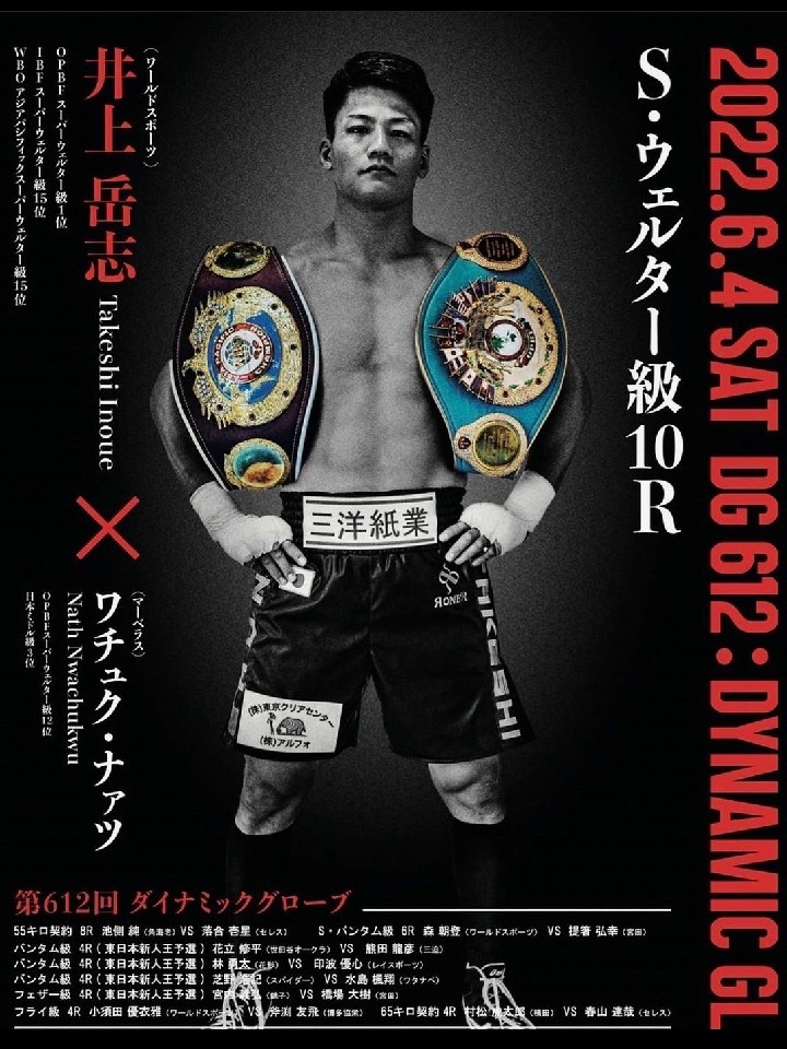 世界ランカー井上岳志の再起戦。昨年11月にオーストラリアでWBO世界1位のティム・チュー(27=豪)に敗れた井上だが、この経験を糧に復活を目指す。ナァツも井上と同じ興行に出場しこれが再起戦なる。両者は、2020年11月に対戦し井上だ判定勝ちしている。インファイトを仕掛けてくることが予想されるナァツに対し、井上がどのように対応するのか。