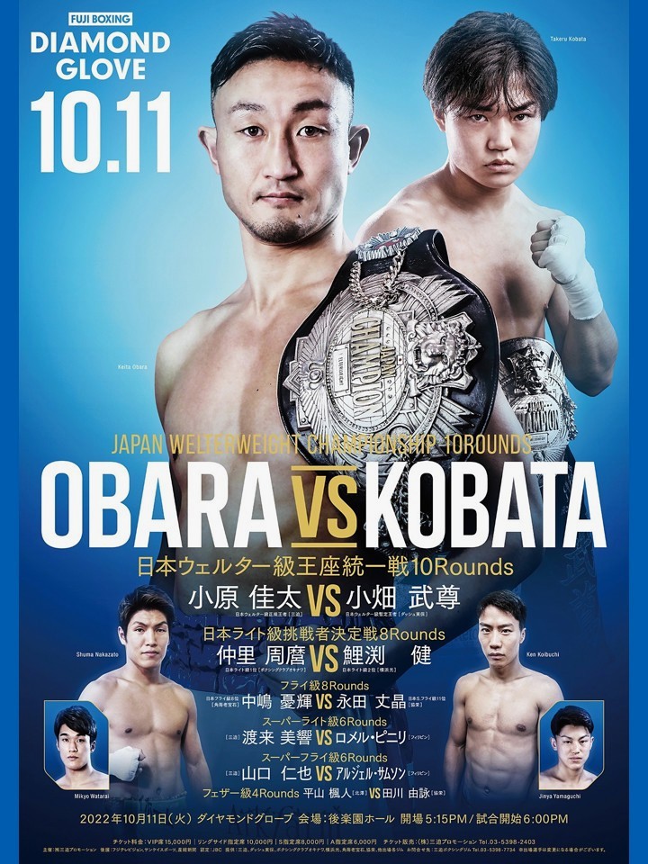 仲里は、今年2月に保田克也(大橋)とのランカー対決を制し、タイトル戦以来の再起戦を勝利。ここを勝って2度目のタイトル戦につなげたい。鋭い踏み込みからキレ味鋭いパンチを打ち込む好戦的なタイプだ。鯉渕は、今年4月に向山太尊(ハッピーボックス)に4回TKO勝ちしランキング入り。打ち合いに強く8勝中7KOを誇る。距離を潰して乱打戦に持ち込みたい。KO決着濃厚な一戦。