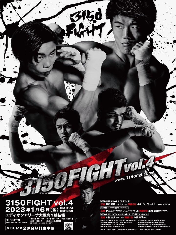 WBO世界ミニマム級王者谷口のV2戦。昨年4月の初防衛戦では石澤開(M・T)に11回TKO勝ちした。緩急をつけた攻撃を得意とし接近戦も強い万能型サウスポー。2度目の世界挑戦のメルビンは、2017年1月に当時のWBC王者のワンヘン・ミナヨーティン(タイ)に挑むも1ポイント差で惜しくもベルトを逃した。鋭い踏み込みからパンチを振ってくる好戦的なタイプ。右オーバーハンド、左ボディには注意が必要だ。谷口としては、指名挑戦者を撃破し2023年最初の世界戦を勝利で飾りたい。