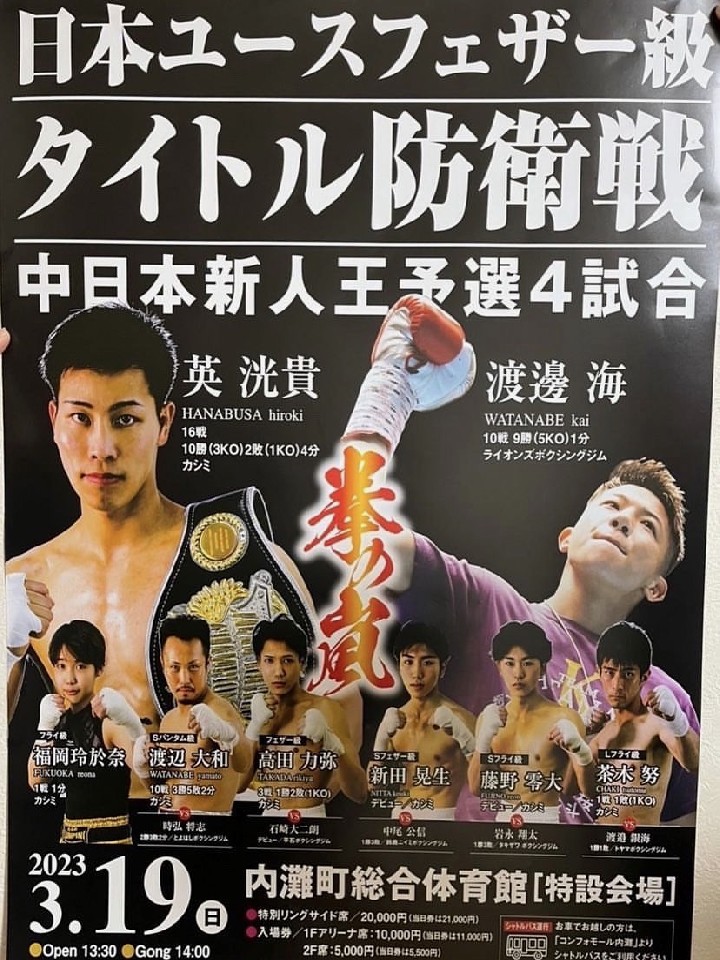 日本ユース王者・英が地元でV2戦を迎える。ジャブを軸とした切れ味鋭い右ストレートが光るスタイリッシュなスタイル。厳しいマッチメークで着実にキャリアを重ねている。ユース王座初挑戦の渡邊は大晦日に日本ランカーの中井龍(角海老宝石)に2回TKO勝ち。左フックでタフな中井を仕留めた。お互いにスピードがあり、カウンターを得意とする。ヒリヒリとした攻防が繰り広げられるだろう。