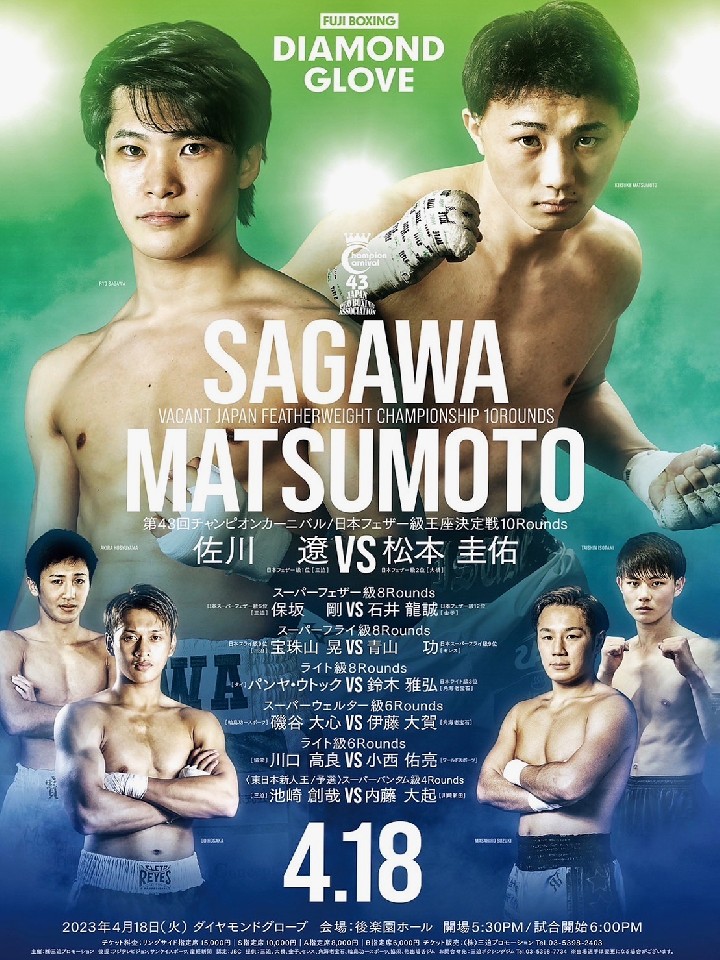 空位の日本王座を懸けて元王者の佐川と"ミライモンスター"松本が激突する。佐川は、昨年4月に元世界王者の久保隼(真正→引退)に3回KO勝ちして以来、1年ぶりのリング。中間距離から伸びてくる右ストレートに磨きがかかり進化を遂げている。タイトル初挑戦の松本は、左右ともにタイミング抜群のカウンターと勝負所を逃さない嗅覚が持ち味。ここ数戦は序盤で決着をつけている。中盤以降に大きな山場が訪れそうだ。ハイレベルな技術戦を制するのは?!