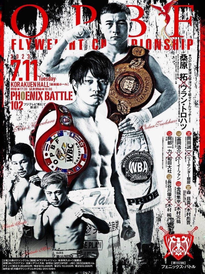 OPBF東洋太平洋王者の桑原が世界ランカーを迎えて指名戦に臨む。昨年10月に戴冠すると、今年3月にメキシコ王者に初回わずか51秒KO勝ち。持ち前のスピードに加えて決定力がアップし強さに磨きがかかっている。トロハツは、今年1月に元世界王者の木村翔(花形)と引き分け。左を下げた構えで放り出すようなジャブから、右につなげるのを得意とする。桑原としては世界をアピールする内容を見せたいところだ。
