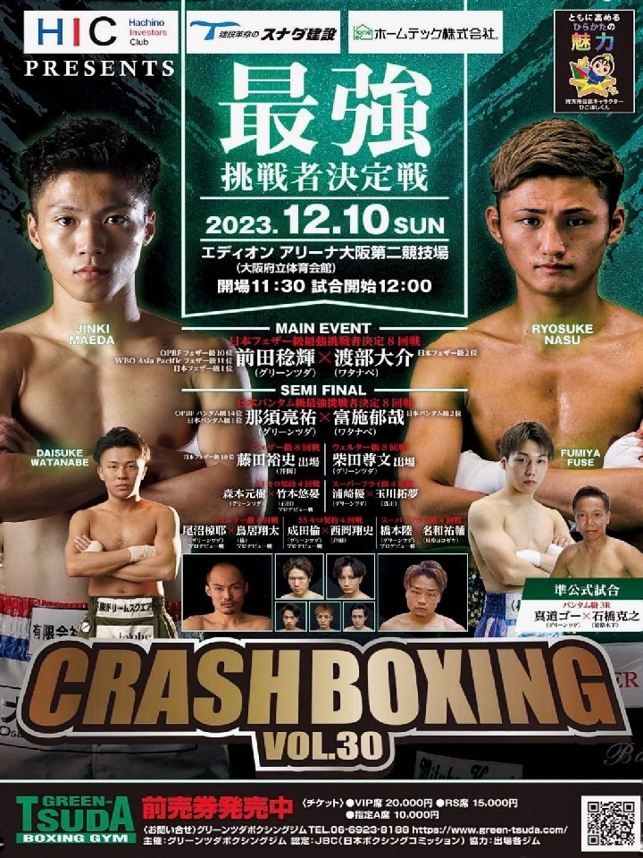 那須は、ジャブを軸にテンポの良い攻撃を見せる右アウトボクサー。5連勝で上位進出してきた。富施は、今年5月にモンスターバンタム級トーナメントに敗れて以来の再起戦。カウンターが光るサウスポーだが、ここ数戦はフィジカルの強さを見せている。富施が仕掛けて那須が迎え撃つ展開になりそうだ。