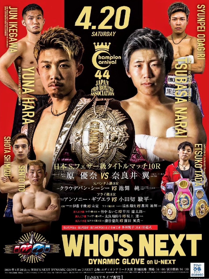 日本Sフェザー級王者の原のV2戦。昨年12月の初防衛戦では初回KO勝ちで貫録勝ち。中間距離から伸びのある右ストレートでダウンを奪うと、チャンスに畳みかけた。今、最も勢いがあるチャンピオンの一人だ。2度目のタイトル挑戦の奈良井は挑戦は決定戦を初回KO勝ち。殺傷能力の高い左フックが魅力たっぷりだ。一瞬の隙を見せた方が一気に呑み込まれる。瞬き厳禁のカードだ!