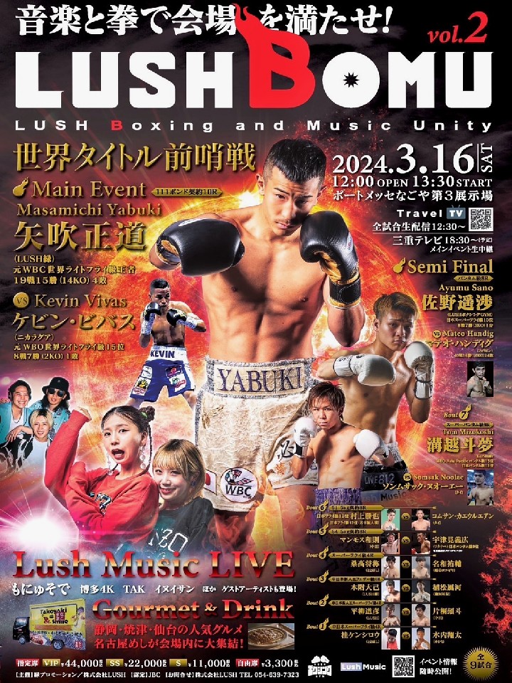 矢吹が世界前哨戦に臨む。昨年5月に左足アキレス腱を断裂しブランクを作ったが再びリングに戻ってきた。キレ味抜群のジャブから殺傷能力の高いパンチ、勝負を決めに行く嗅覚は一級品だ。元世界ランカーのビバスは、昨年10月にレネ・サンティアゴ(プエルトリコ)とのWBO世界Lフライ級暫定王座決定戦に出場し12回TKO負けを喫している。年内の世界再挑戦を目指す矢吹としては豪快に倒し、王座奪還に弾みをつけたい。