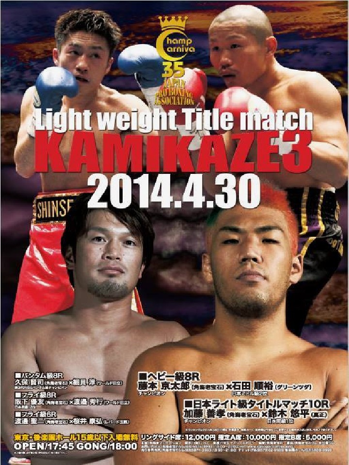 試合:ヘビー級に挑戦する石田。ノンタイトル戦だが国内ヘビー級の今後の行く末を占う大事な一戦。ミドル級を主戦場に世界のトップ選手と試合をしてきた石田だが、ヘビー級挑戦は無謀な賭けか?日本王者、藤本はスピードとパワーで国内最強を証明できるか?