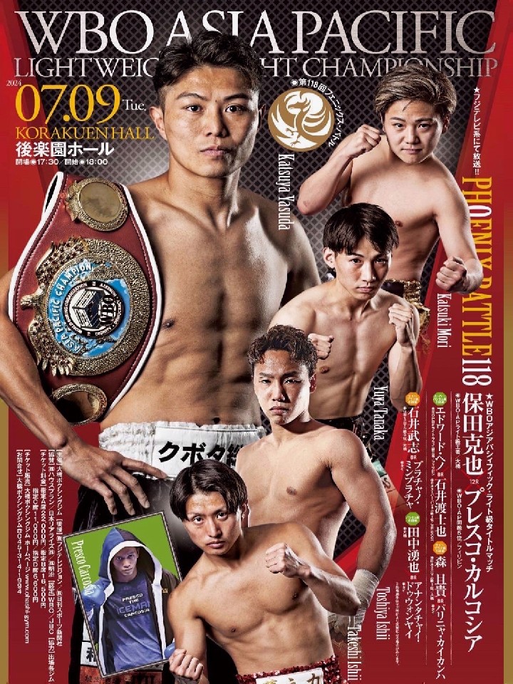 WBO-APライト級王者の保田の3度目の防衛戦。今年1月の防衛戦では9回TKO勝ちで存在感を示した。絶妙な距離感とリズムの変化に長けた技巧派サウスポーだ。挑戦者のカルコシアは、2022年7月に森武蔵(志成)とノンタイトル戦で対戦し判定負け。距離を取りながら左フック、右オーバーハンドで攻め立てる右ボクサーだ。粘り強いカルコシアを倒せばさらに評価が上がりそうだ。保田の組み立てに注目。