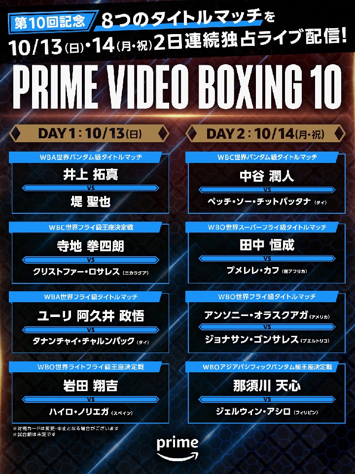 WBA世界フライ級王者の阿久井のV2戦。無駄のない動きで右ストレートや左ボディで崩していく強打とテクニックを兼ね備えており、ボクシングIQが高い。世界戦初のKO勝ちに期待が高まる。挑戦者のタナンチャイは、今年8月に畑中建人(畑中)に判定勝ちしWBO-AP王座を獲得。独特のタイミングとコンパクトなコンビネーションが光る試合巧者だ。阿久井の崩し方に注目。