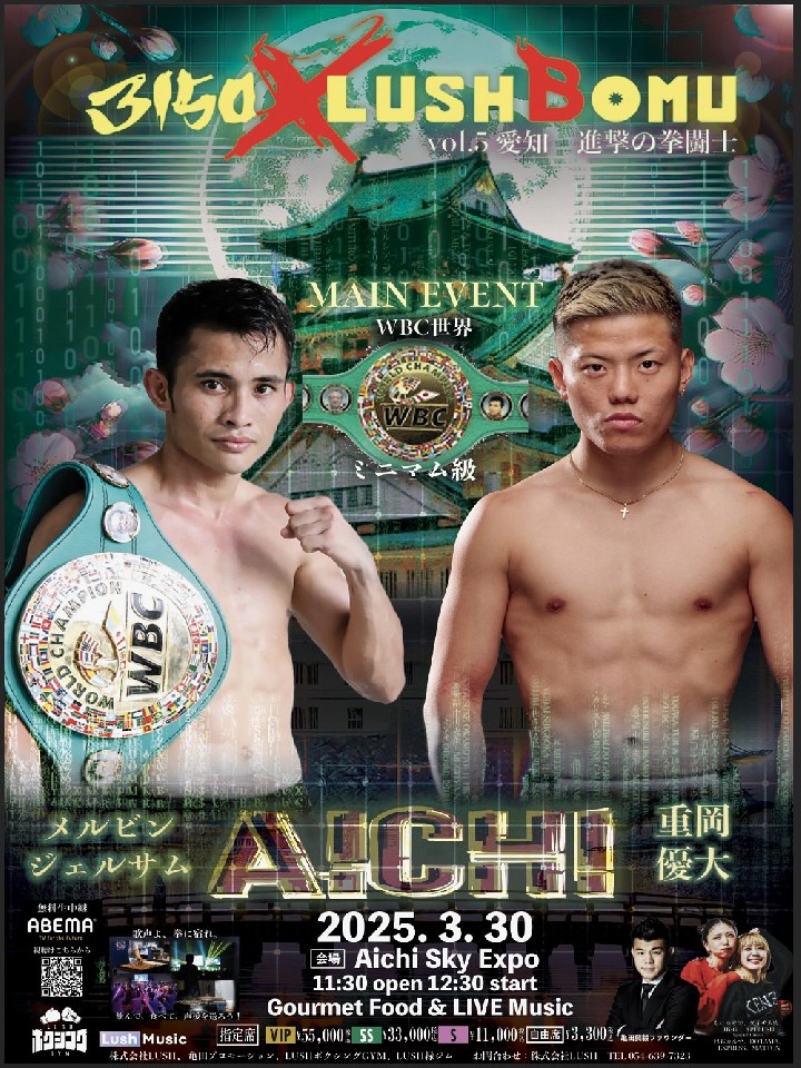 立場を入れ替えての昨年3月以来の再戦。前回はジェルサエムがダウンを奪い、後半猛追した重岡を振り切り判定勝ちした。重岡としては相手のノーモーションの右ストレートを警戒しつつ、ボディから崩していきたい。名古屋で喫した悔しい思いを名古屋で払しょくする!