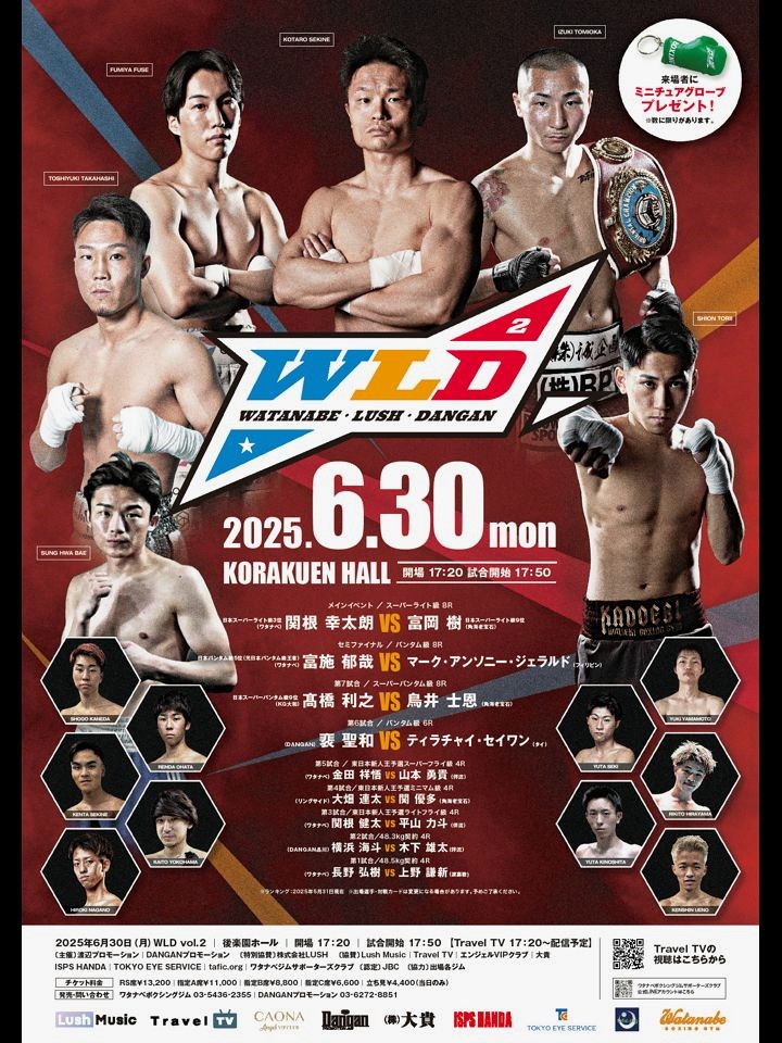 日本Sライト級3位の関根は、昨年10月の日本王座挑戦者決定戦以来の再起戦。緩急をつけながら強烈なコンビネーションで崩していく攻撃型だ。富岡は、昨年12月に韓国でWBOオリエンタル王座を獲得。ジャブを軸にテンポの良い攻撃を得意とするテクニシャンだ。Sライト級実力者対決。追いかける関根を富岡が迎え撃つ展開になりそうだ。
