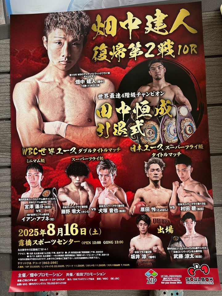 元WBO-AP王者の畑中の再起2戦目。今年4月の試合ではダウンを挽回し逆転KO勝ち。抜群の勝負強さを発揮した。スーパーフライ級2戦目で粘り強いディオコスを倒し、存在感をアピールしたい。
