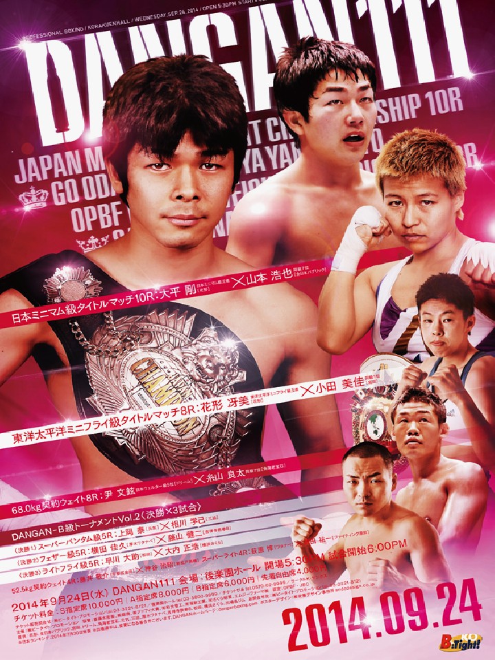 注目:2度目の挑戦で見事王座を獲得した花形(29)の初防衛戦。小柄だがタフなファイトを心情とする花形。鬼門の初防衛戦だが、世界に向けてその力をアピールしたい。対する指名挑戦者の小田(30)は今回が3度目のOPBF挑戦。花形とは初対戦となる。