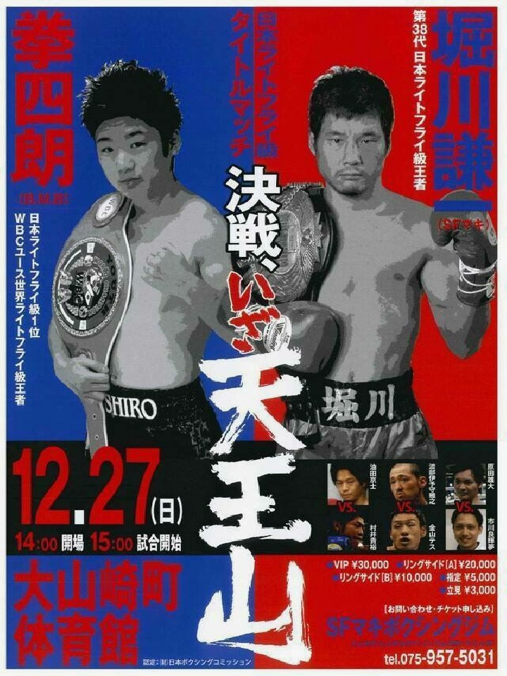 注目:年末に予定されている世界戦7試合と肩を並べる超注目の日本タイトル戦。京都出身ボクサー対決。今年、ボクシング界に旋風を巻き起こした京都!2015年はこれで見納め!
