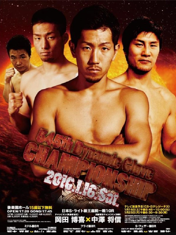 注目:2016年、最初の興行となるメインイベントは日本Sライト級王座統一戦。正規王者の岡田は右手親指付け根の骨折の影響でこれが10ヶ月ぶりのリング。右が使えない間、左の強化に努めてきた。拳を交えるのは昨年9月に暫定王者に輝いた中澤。テクニックでは岡田が上回るが、ブランクによる試合勘を取り戻すことが出来るかが心配の種。中澤は序盤からペースを取るのは必須、打ち合いに持ち込むことができればチャンスが生まれてくる。岡田としては存在感を示し、さらにもう1ランク上のステージへと駆け上がる戦いを見せたい。年頭から後楽園ホールが盛り上がる試合になること間違いなしの一戦だ。