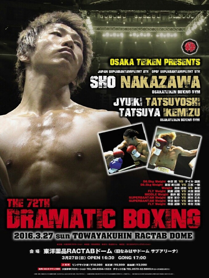 注目:大阪帝拳ジムを牽引する中澤奨が、昨年11月に国内デビューを果たしたテイル渥美(10戦9勝)と激突。