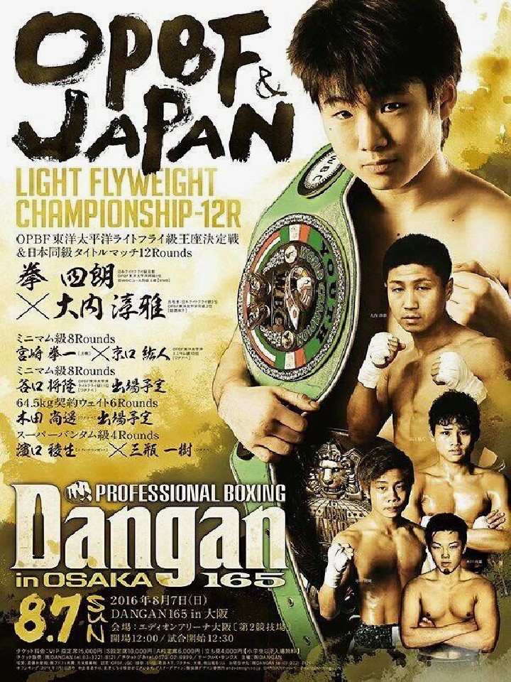 注目:軽量級注目の日本チャンピオン拳四朗(BMB)が、日本タイトルの防衛と東洋太平洋ライトフライ級王座奪取をかけて、大内淳雅と拳を交える。2013年には日本王座挑戦権をかけて最強後楽園の決勝まで進んだが、堀川謙一にチャンスを奪われた大内。その堀川からベルトを獲った拳四朗と大内がぶつかる。このチャンスをみすみす逃すとは思えない大内が、若武者の勢いを止めるのかー?