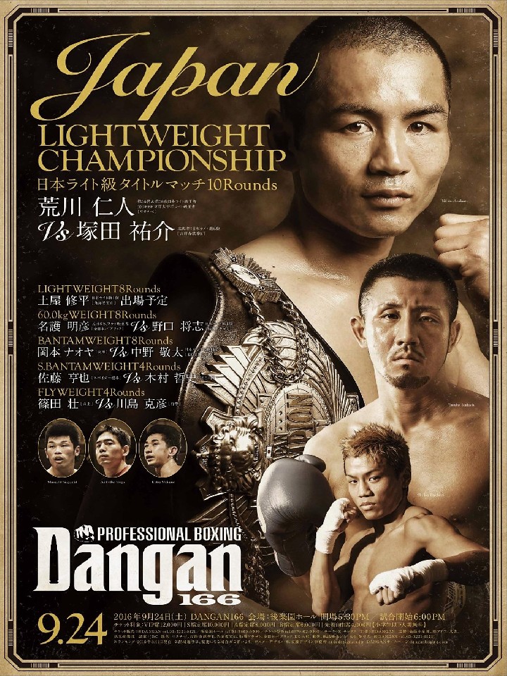 注目:前回、敵地・京都で2度のダウンを奪い、約5年ぶりに日本王座を奪還したサウスポー荒川の初防衛戦。相手はこれがタイトル初挑戦の塚田。世界のトップと拳を交えてきた荒川は一時は勝ち星から見放されたが、石原雄太トレーナーとのコンビがマッチしてくると復調、再浮上した。34歳のベテランサウスポーはさらに進化を遂げ再び世界をアピールする試合を見せるとともにライト級の覇者として塚田の前に立ちはだかる。タイトル初挑戦の塚田は長いリーチを生かしてのアウトボクシングを得意とするが、時には激しい打撃戦も迎え撃つ。実績では荒川に大きく見劣りするが、吉祥寺鉄拳8ジム権撫r会長と二人三脚で番狂わせを狙う。塚田がどれだけサウスポーに対応できるのかにも注目したい。前戦敗戦している塚田は再起戦でのタイトル挑戦となるが、ベルトを獲得すれば鈴木誠(野口=日本ミニマム級王者)以来、約15年ぶりの記録となる。