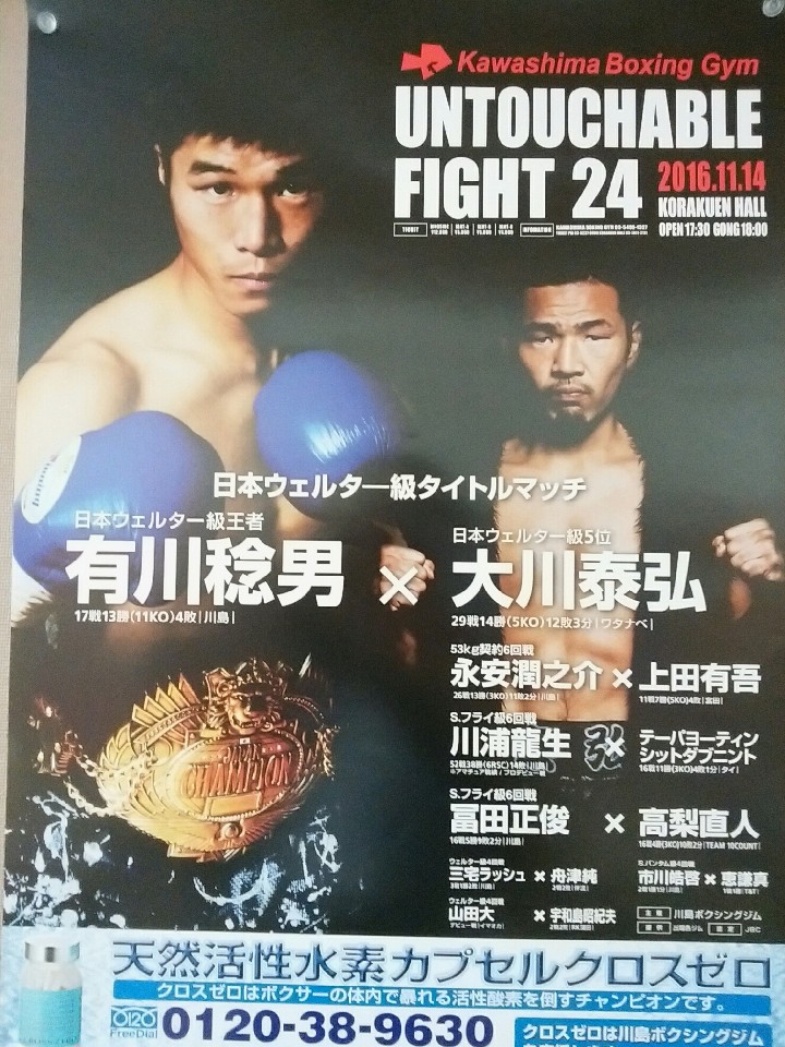 注目:4月に10回TKO勝ちで新王者となった有川(31=川島)の初防衛戦。相手は1月の王座決定戦以来の再起戦が2度目のタイトル挑戦となった大川(32=ワタナベ)。重厚なプレスをかけ強烈なパンチ力でKOの山を築いてきた有川。ハードパンチャーの宿命としてこれまで5度にわたり右拳を骨折。前回の試合でもKO骨折し完治に時間を要し約半年ぶりの試合となった。守る立場となったがプレッシャーは感じていないようだ。挑戦者の大川とは2013年8月に対戦。この時は大川が2-1の判定で有川を破りランキング入りした。3年3ヶ月ぶりにグローブを合わせる有川は初防衛ともにリベンジを誓う。試合はスピードで上回る大川が距離を取り、有川が追いかける展開が予想される。スタミナに自信のある有川は前半ポイントでリードされていても、後半捕らえる自信があるはず。大川は有川の圧力を受けながら10ラウンド動き続けるのは至難の業。どこかで打ち合う覚悟も必要とされる。有川の強打を耐えるフィジカルと精神力を用意しなければならない。有川が雪辱をはたし王者として歩みを進めるのか?それとも大川が悲願のベルト奪取なるのか?