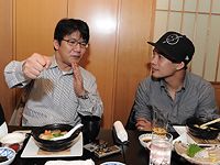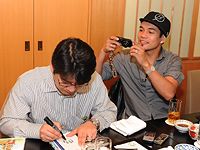 ドネア 一緒に写真撮ってもいい?フォロワー(ツイッター)の多くの人が「はじめの一歩」のファンなんだ。僕のフェイスブックに載せていい?(記念写真に納まりながら)きょうは楽しいな。僕はね、一歩や宮田などマンガに出て来る選手を合わせた選手を目指しているんだ。