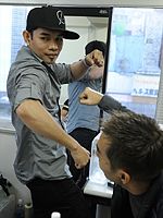 ドネア だいたい普段は135ポンド〜137ポンド(約61キロ〜62キロ)かな。ウエイトトレーニングとかやるとすぐ上がるからね、この間は145ポンド(約66キロ)まで上がったちゃったよ。